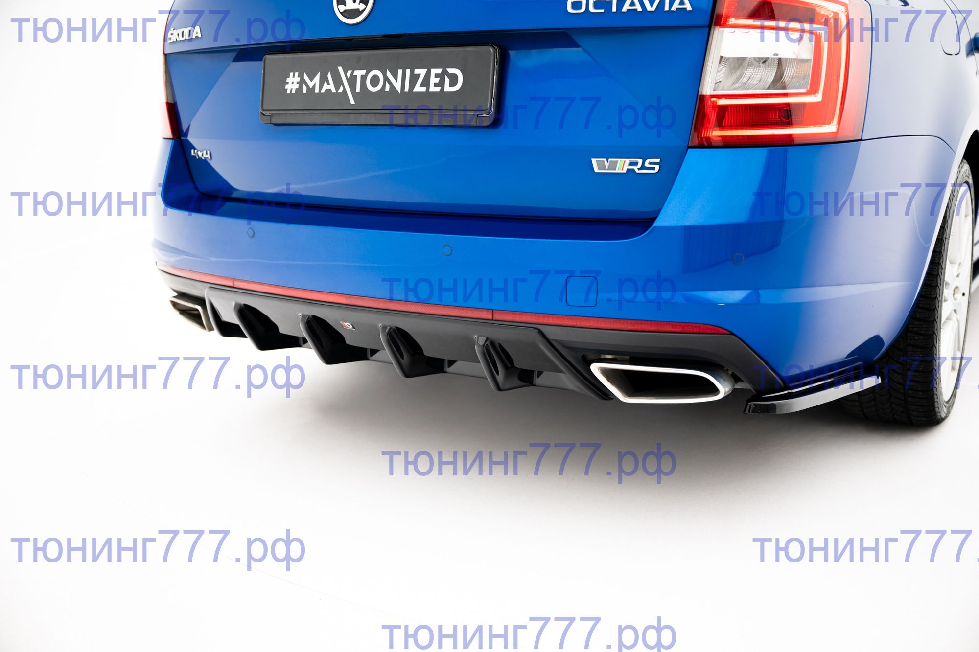 Диффузор с ребрами от Польской компании Макстон Дизайн для внешнего тюнинга автомобиля Skoda Octavia 3 (поколение А7) только в версии RS лифтбэк и универсал.