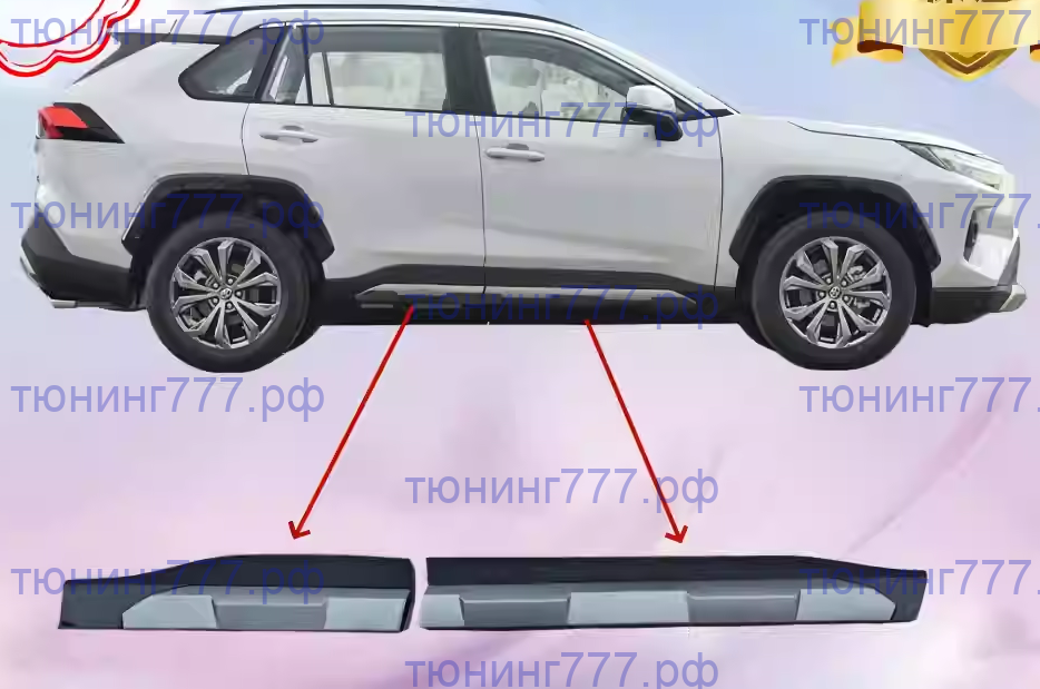 Молдинги на двери Toyota Rav 4 ха50 защитят Ваш авто от повреждений и украсят внешний вид Вашей машины. Молдигни с хромом устанавливаются на клипсах, вместо штатных накладок Тоета Раф4 Ха50 кузов. Срок поставки к нам составит от 6 недель*, после внесения оплаты. Оформите заказ у нас на сайте либо через чат в мессенджерах Телеграмм или ВК. - "А какие гарантии, что меня не обманут?" (с) Домен тюнинг777.рф зарегистрирован 11.01.2011 - более 15 лет назад. Мы в сфере тюнинга давно и надолго. Отзывы о нас: Яндекс карты - ссылка ВК группа - ссылка Драйв2 - ссылка * Обращаем внимание, что наша компания не несет ответственности за задержки в поставке товаров, вызванные по вине транспортных компаний за пределами и на территории РФ, задержками вызванными таможенным контролем, а также в связи с праздниками и выходными в странах производителей, транзитных странах и на территории РФ. Указан срок поставки до главного склада компании, без учета срока поставки до покупателя. Сопутствующие товарыОтзывы о Молдинги по низу дверей на Toyota Rav4 ха50Отзывов пока не было. Вы можете оставить его первым