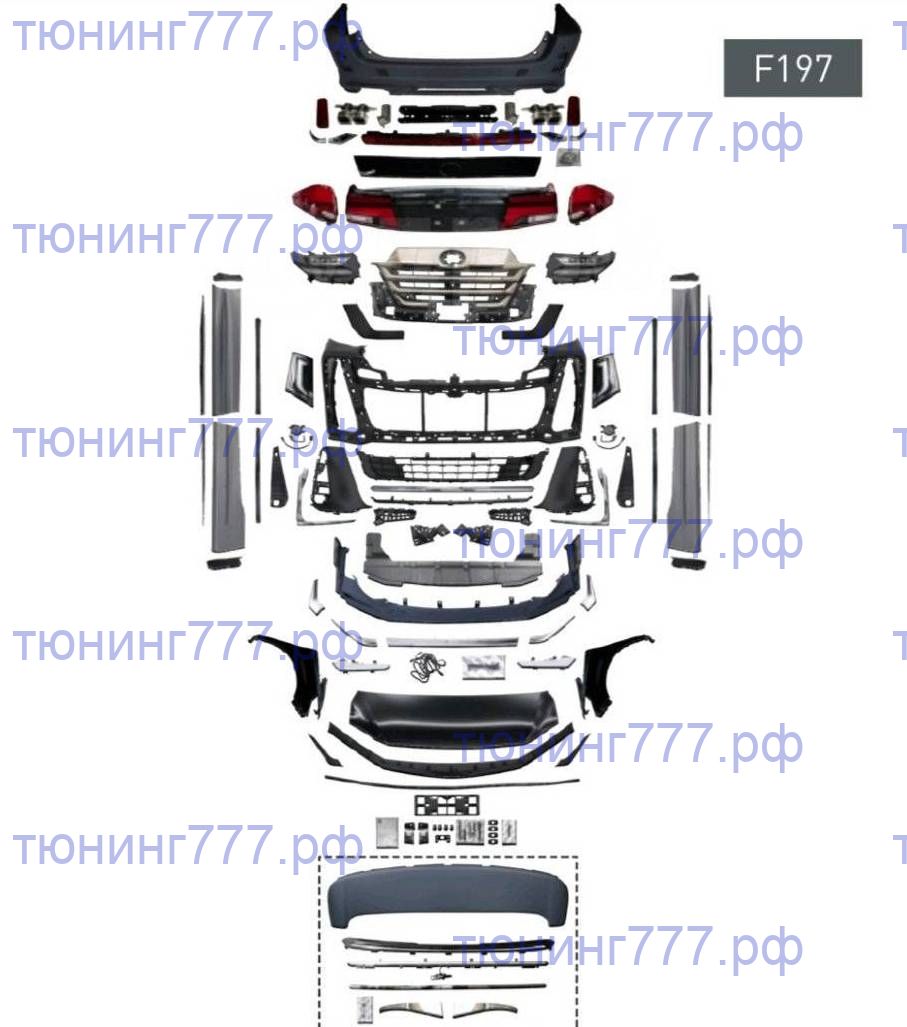 В комплект входит: - капот - передние крылья 2шт - фары 2шт - передний бампер с хром вставками - накладка на передний бампер - противотуманные фары 2шт - решетка радиатора с эмблемой - задний бампер с хром вставками - дополнительный стоп-сигнал - обвес Modellista - имитация насодок глушителя - накладки на боковые двери с хром вставками - крепеж Срок поставки к Вам составит от 5 раб. дней, после оплаты и при наличии в РФ. Купить набор для переделки Alphard / Vellfire H20 2008-2015 в Vellfire H40 легко - оформите заказ у нас на сайте либо через чат в мессенджерах Телеграмм или ВК. - "А какие гарантии, что меня не обманут?" (с) Домен тюнинг777.рф зарегистрирован 11.01.2011 - более 15 лет назад. Мы в сфере тюнинга давно и надолго. Отзывы о нас: Яндекс карты - ссылка ВК группа - ссылка Драйв2 - ссылка Авито - по запросу (ссылка есть, но постоянно меняется у Авито) Отзывы о Набор обвеса для переделки Toyota Alphard / Vellfire H20 2008-2015 в Вэлфайр H40 с 2023+Отзывов пока не было. Вы можете оставить его первым