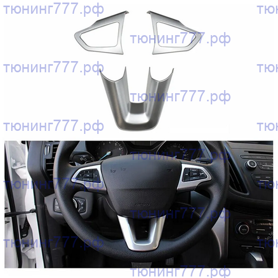 Накладки на руль, серебристый цвет, Куга 2 c 2017-Главная » Каталог моделей » Ford » Kuga II 2013-2019 » Накладки на руль, серебристый цвет, Куга 2 c 2017-