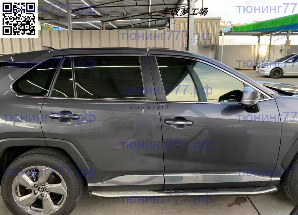 Окантовка стекол (8шт при этом установить можно всего 6 частей - задние части на выбор было коротки либо "бумеранги") выполнена из полированной нержавейки (хром эффект) и устанавливается на Ваш автомобиль Toyota Rav4 / Тойота Рав4 пятого поколения с 2019 2020 2021 2022 2023 2024 2025 г.в. на 3М скотче, поверх штатных элементов.