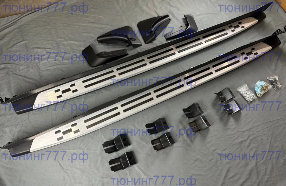 - В комплекте 2 ступени и крепления для установки на Санта Фе- 4 брызговика специально под эти пороги - Крепление порогов производится на штатно предусмотренные для них места - Габариты 191-30-20см., вес примерно 20кг Срок поставки к Вам составит от 1-2 раб. дней, после оплаты и при наличии в РФ. Купить пороги подножки на Hyundai Santa Fe легко - оформите заказ у нас на сайте либо через чат в мессенджерах Телеграмм или ВК. - "А какие гарантии, что меня не обманут?" (с) Домен тюнинг777.рф зарегистрирован 11.01.2011 - более 15 лет назад. Мы в сфере тюнинга давно и надолго. Отзывы о нас: Яндекс карты - ссылка ВК группа - ссылка Драйв2 - ссылка Авито - по запросу (ссылка есть, но постоянно меняется у Авито) Отзывы о Подножки боковые для Hyundai Santa Fe с 2024+Отзывов пока не было. Вы можете оставить его первым