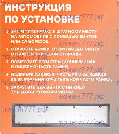 Описание Рамка номерного знака (1шт.) с прямоугольными углами изготовлена из стали. В комплекте резиновые проставки, чтобы рамка не гремела, как это часто бывает при неплотной фиксации на крышке багажника. Рамка адаптирована под номерной знак РФ. Стильный внешний вид. Срок поставки к нам составит 1 день, после внесения оплаты. Отзывы о Рамка номерного знака, сталь, вариант 2Отзывов пока не было. Вы можете оставить его первым