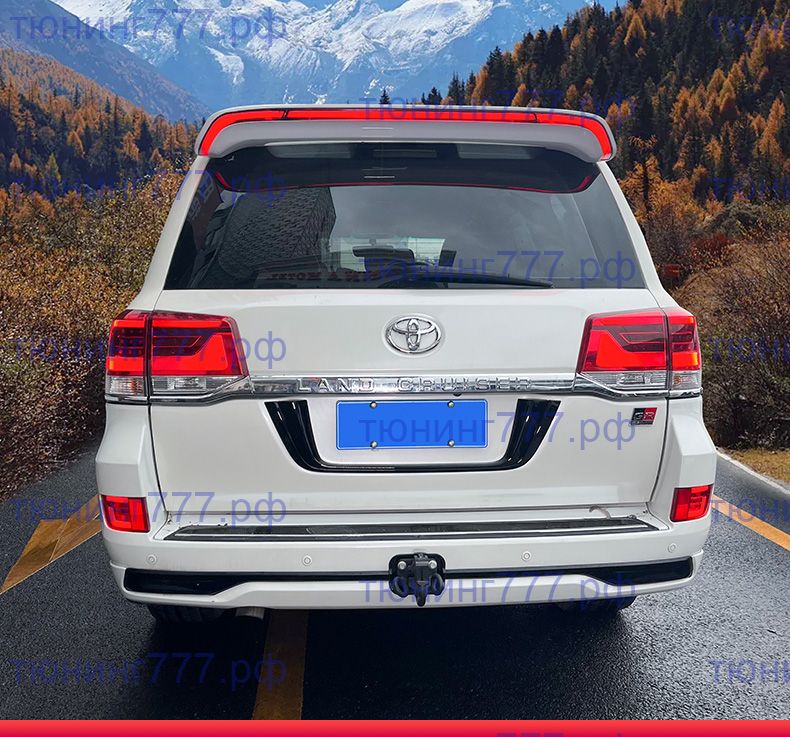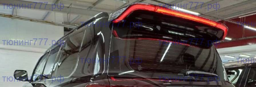 Тюнинг задний спойлер на джип Toyota Land Cruiser 2007-2021 года имеет 3 режима работы: габарит, стоп-сигнал, и поворотники (динамические). Материал пластик ABS, окрашенный в белый перламутр или в чёрный цвет. Установка вместо оригинального. Производитель - КНР.