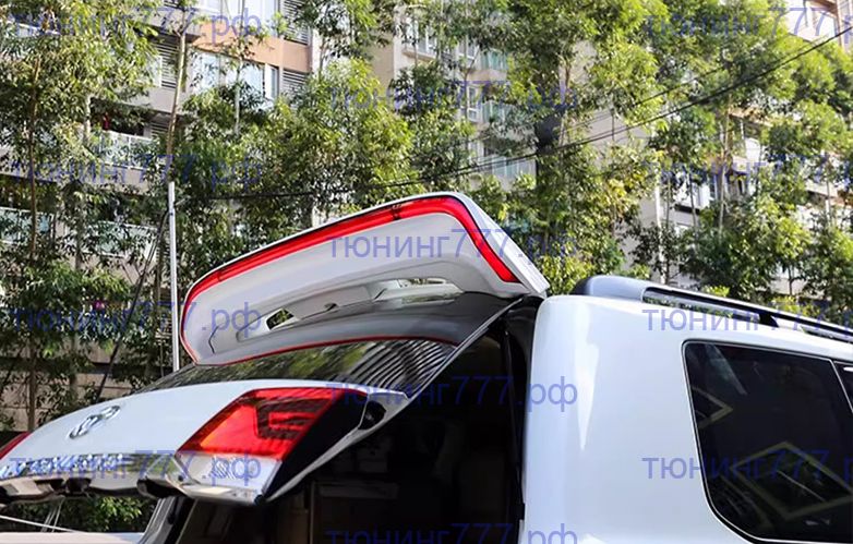 Тюнинг задний спойлер на джип Toyota Land Cruiser 2007-2021 года имеет 3 режима работы: габарит, стоп-сигнал, и поворотники (динамические). Материал пластик ABS, окрашенный в белый перламутр или в чёрный цвет. Установка вместо оригинального. Производитель - КНР.
